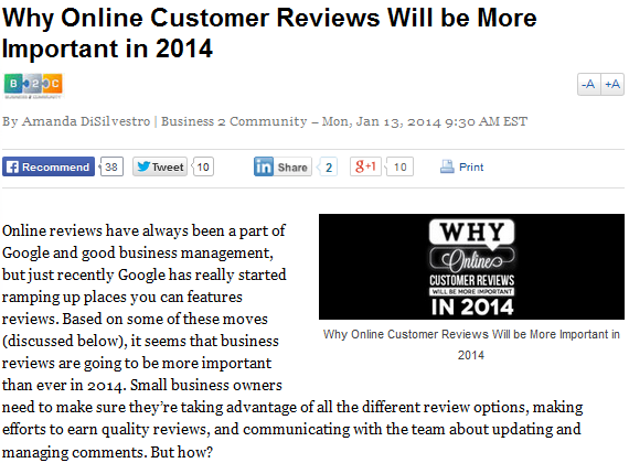 (Source: Why Online Customer Reviews Will be More Important in 2014, Yahoo! Small Business Advisor)