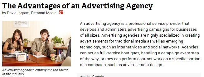 (Source: The Advantages of an Advertising Agency, Houston Chronicle)